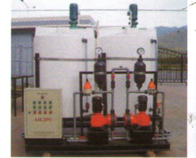 雙罐雙泵加藥裝置 雙罐雙泵加藥裝置是是一種常用的加藥裝置,被廣泛應(yīng)用于電廠的原水、鍋爐給水、油田地面集輸脫水處理系統(tǒng),石油化工各種加藥系統(tǒng)和廢水處理系統(tǒng)。如投加混凝劑、磷酸鹽、氨液、石灰水、水質(zhì)穩(wěn)定劑(緩蝕劑)、阻垢劑、液體殺蟲劑等。 加藥裝置安裝圖